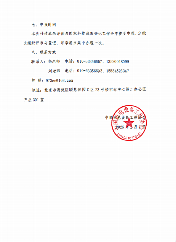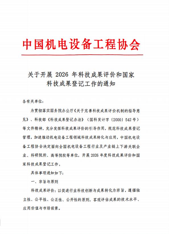 关于开展 2026 年科技成果评价和国家科技成果登记工作的通知
